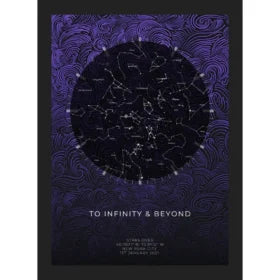 Graceful and enchanting, Violet Swirl blends soft violet tones with flowing celestial patterns. Designed to capture a meaningful moment in the stars, this star map adds a dreamy, artistic touch to any space.